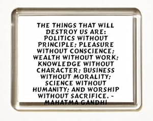 Wealth without work. Pleasure without conscience. Knowledge without character. Commerce without morality. Science without humanity. Worship without sacrifice. Politics without principle. Contents. 1 History and influence. 1.1 Description as "Seven Blunders" ... Read Article